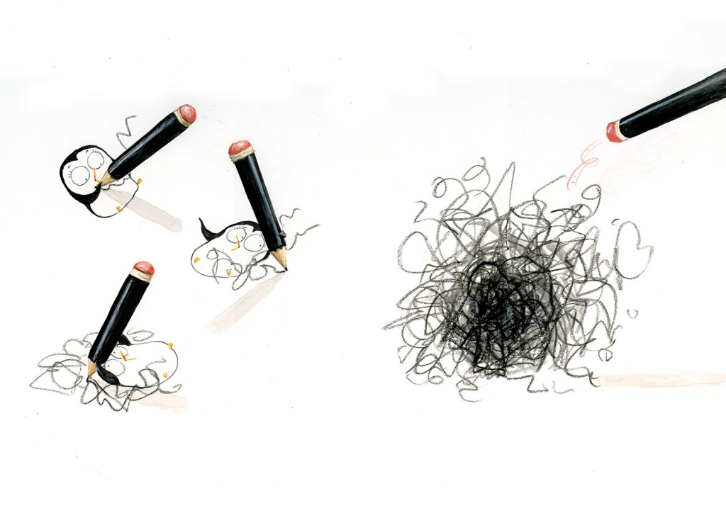 I created the illustrations for The Cute Penguin using watercolour, gouache and pencil.