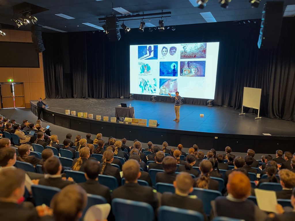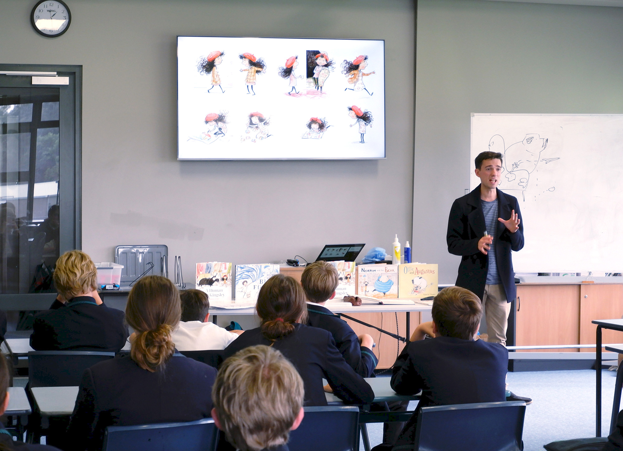 Wynyard High School (Tasmania) ‘…Gabriel passed on his vast knowledge and professional experience to students through interactive activities that focused on the process of designing a character, the tools in creating a page spread, portraying the emotional body language of characters and training the eye in composition. Gabriel’s presentation methods were engaging, motivational and inspirational.’